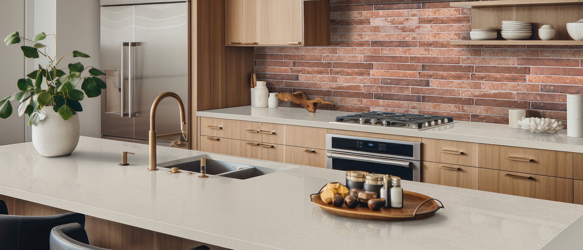 Just like strolling along the shore, Aruca White™ quartz brings a tranquil and serene atmosphere to your space that’s sure to stay on trend for years to come. With its inviting warm white base and fine light and dark grains resembling sand, the neutral tones in this quartz can be utilized throughout your living areas, achieving a cohesive and lavish appearance. Whether it's for residential or commercial environments, this remarkable quartz beautifully transforms into sandy white countertops, cascading islands, captivating backsplashes, and more. Opt for this resilient, stain-resistant, and germ-resistant polished quartz for your upcoming project and experience the refinement it adds to your space.