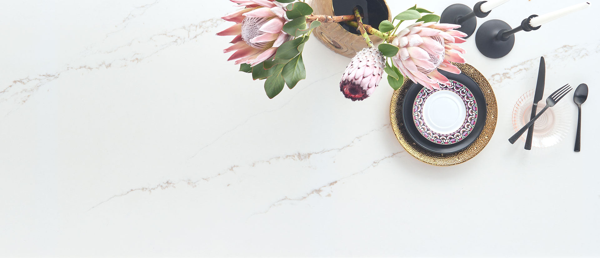 Calacatta Arno Quartz is a beautiful marble-look quartz that features a warm white backdrop enhanced by thin gray veins highlighted with lovely gold accents. Unlike natural marble that succumbs to water spots and stains, the white coloring on this engineered surface will stay bright thanks to the nonporous surface. Feature the marble-inspired quartz as a countertop, backsplash, or wall accent in any kitchen, bathroom, bar, or entryway. Accentuate the gold details further by pairing the elegant quartz with gold or brass fixtures or other furnishings.
