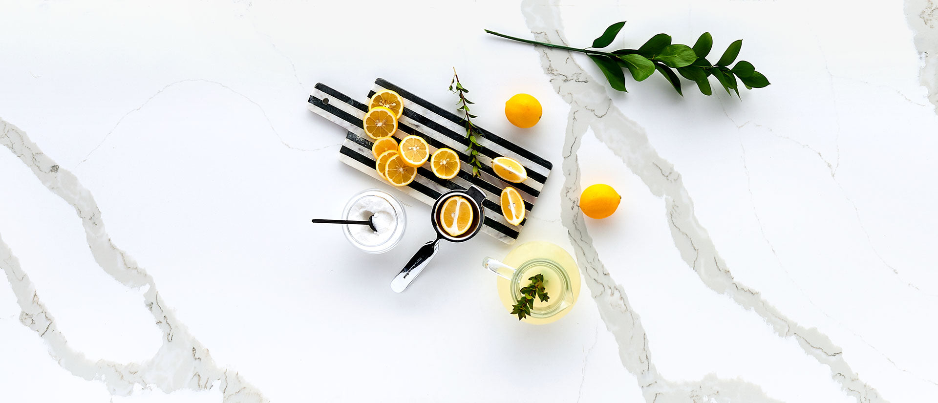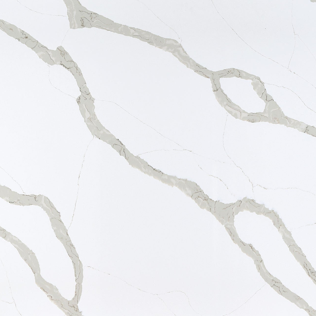 Daring, elegant, and expressive, Calacatta Bali Quartz Countertops feature a warm white background with a striking mix of bold, dramatic veins intertwined with thin veins for a natural effect. Create standout countertop surfaces or accent walls in both residential and commercial environments. This quartz works well with any architectural and design style to make a truly unique space. Calacatta Bali® offers the look of marble with the durability and low maintenance of quartz. Select from 2cm and 3cm slabs for design and installation flexibility.