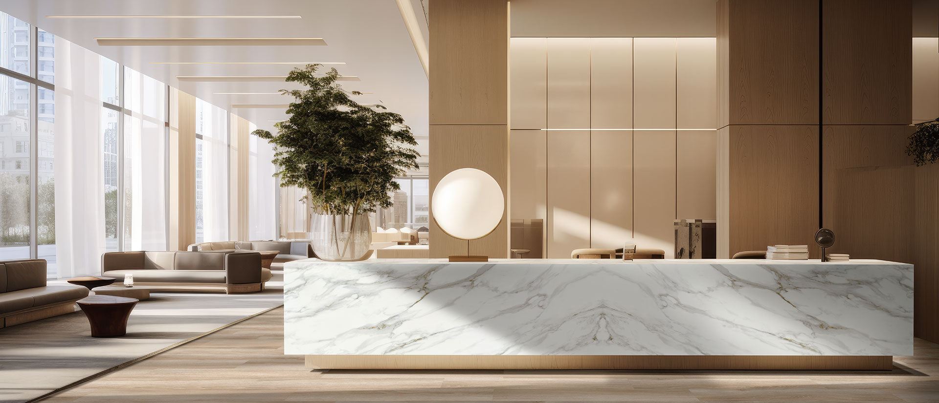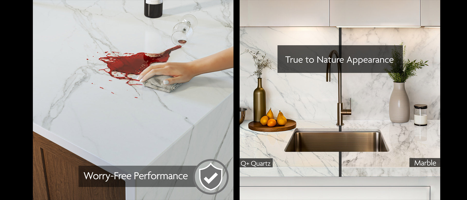 Discover the unmatched sophistication of Calacatta Castana, a standout gem in our Q+ Collection. Boasting a captivating warm and cool toned vein structure, this masterpiece seamlessly blends state-of-the-art technology with timeless design. Thanks to the groundbreaking High Definition Inkjet print technology, intricate marble patterns grace a quartz and recycled glass base, providing the authentic look and feel of natural marble with an unprecedented level of detail and realism. Calacatta Castana effortlessly unites the enduring advantages of traditional quartz with a newfound standard of sophistication. In an era characterized by pushing boundaries, our Q+ Collection remains a symbol of unwavering dedication to elevating surface design to unprecedented levels of beauty and refinement. Redefine opulence in your space with Calacatta Castana, where each detail narrates a tale of innovation and enduring beauty.
