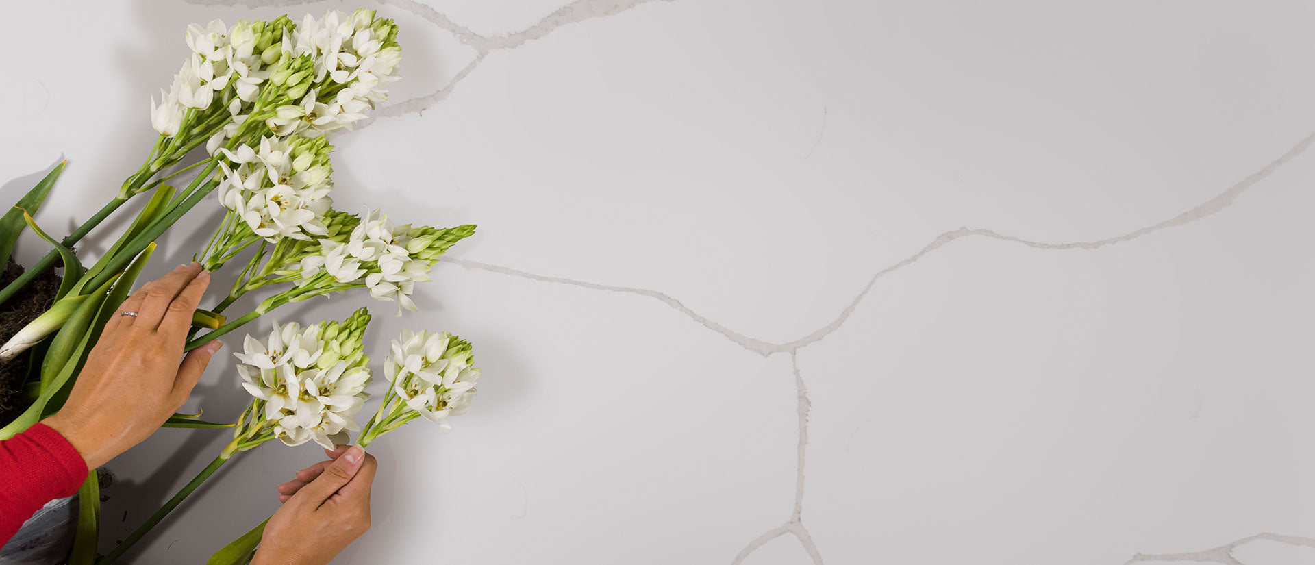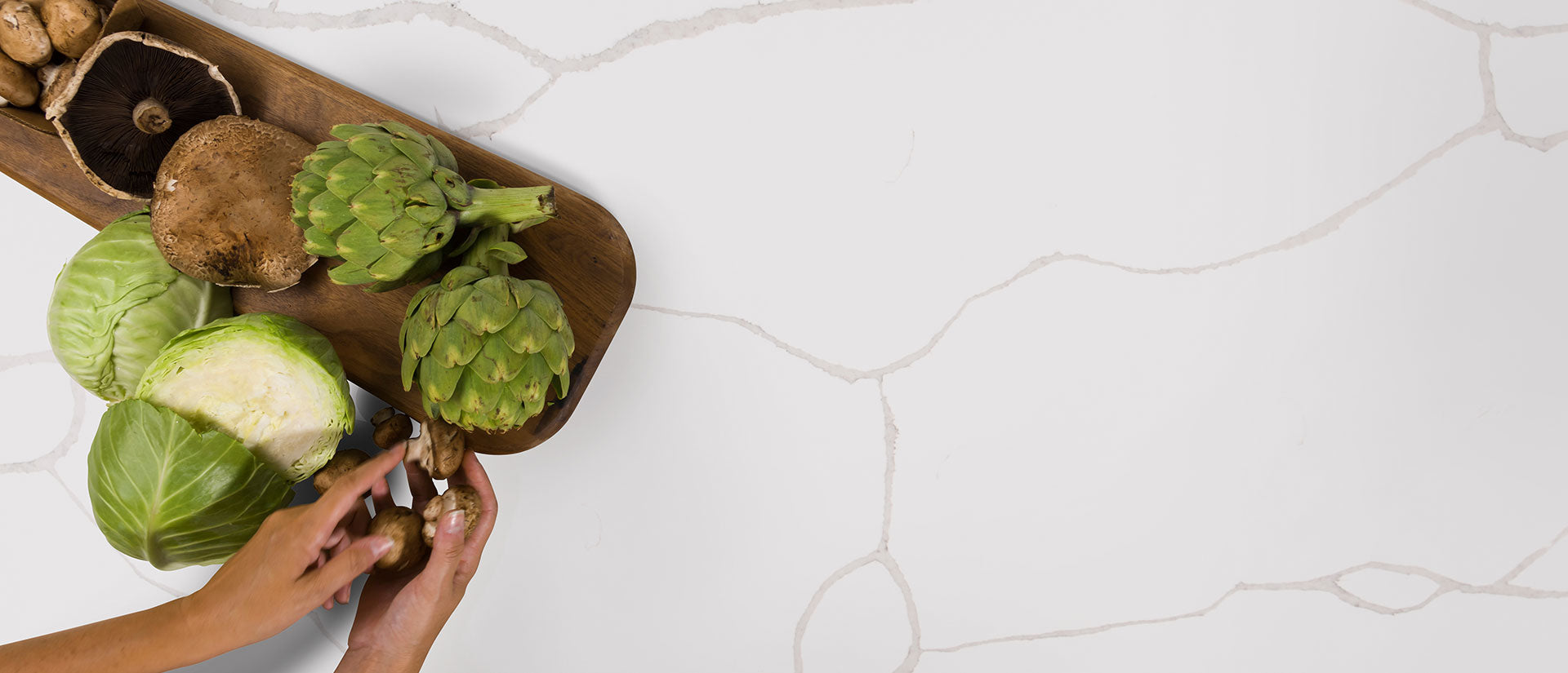 Exquisite and unique, Calacatta Classique Quartz stuns the senses with its clean whites and striking through-body marble look veining. Perfect for creating show-stopping white quartz countertop and waterfall island in kitchens, bathrooms and beyond in both residential and commercial environments, this lovely neutral quartz won't let you down. Calacatta Classique is available in 2 cm and 3 cm slabs along with prefabricated options. Get the look of luxurious marble in this durable and maintenance-free quartz.