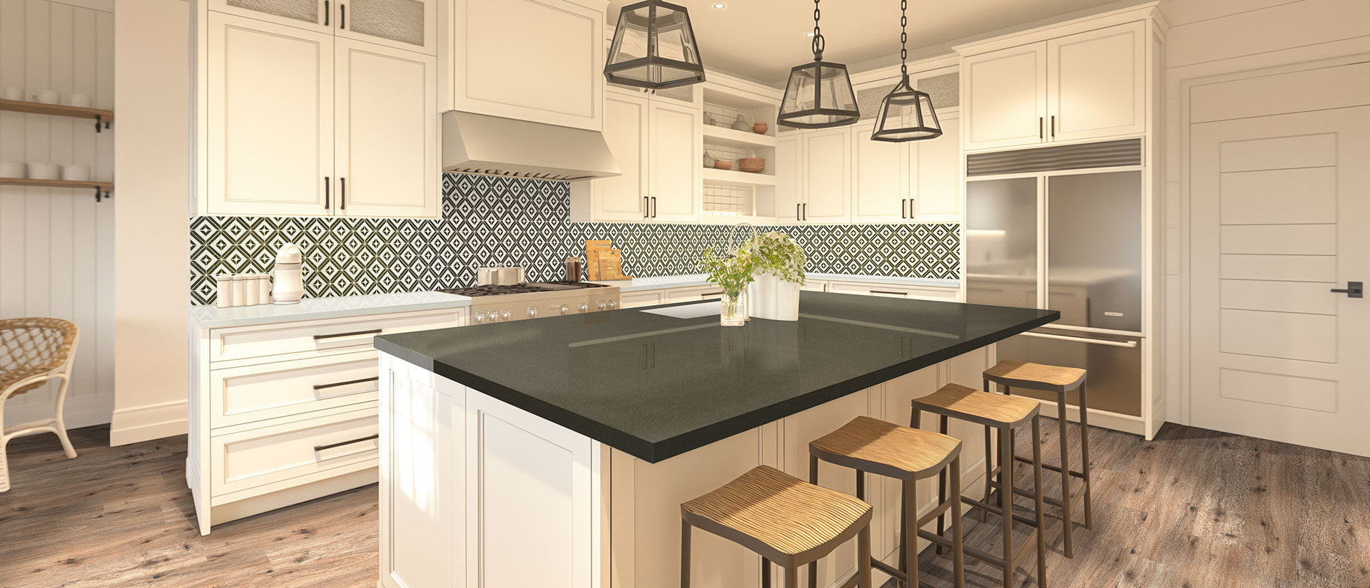 Elevate your space with Calacatta Elysio offering an appealing white base with warm intricate veining. The airiness of its pale backdrop brings a refreshing touch to any space to help brighten up the room. Its wide subtly taupe veins feature various shades of soft beiges and muted grays. The diagonal orientation of the veins create a vibrant and modern appearance, perfectly complementing both traditional and contemporary design styles. Calacatta Elysio is a sophisticated and wise choice for various surface areas, such as countertops, waterfall islands, and accent walls, where durability, low-maintenance and long-lasting beauty are desired.