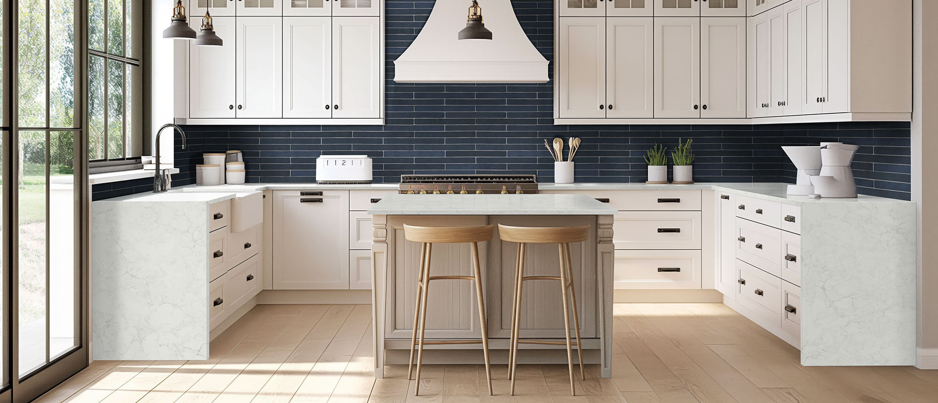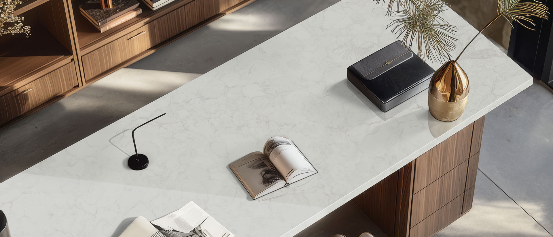 Experience the refined allure of Calacatta Fioressa Quartz, featuring a sophisticated interplay of white and gray tones, accentuated by bold veins of darker gray and gold. Using patented technology to create the most realistic cracked veins against a marbled background, this quartz is crafted for those who value subtlety in their countertop selections. Its delicate veining complements a variety of applications, from countertops to matching backsplashes, waterfall islands, and accent walls. Offering rich depth and easy upkeep, Calacatta Fioressa Quartz blends durability with elegance, available in both 2 cm and 3 cm slabs to ensure enduring beauty in any space.