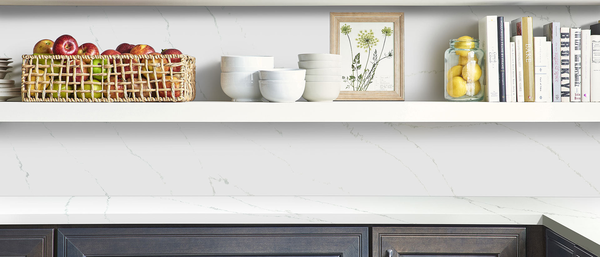 Calacatta Ultra's pure white background is traced with subtle linear veins, evoking the classic look and beauty of natural marble. But with durable, easy-care quartz, you'll be able to achieve the white quartz countertop, waterfall island, or backsplash of your dreams, without all the maintenance. Available in both 2 and 3 cm slabs for design versatility.