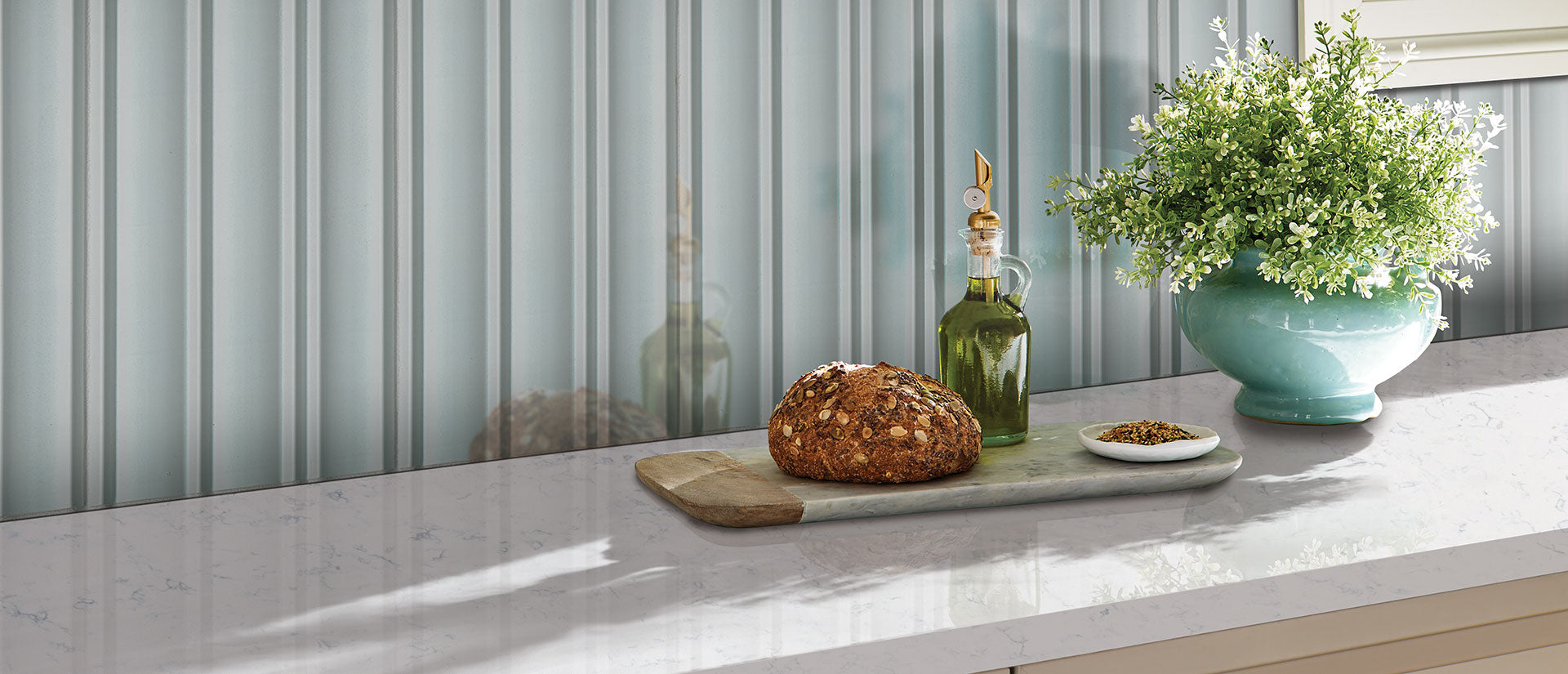 Carrara Lumos Quartz is a lovely marble look Carrara quartz with a white background and wispy gray veins for a soft, stone-inspired look that's just dreamy. Use this neutral engineered surface to brighten up any residential or commercial space, whether it be with a quartz countertop, waterfall island, or wall installation. The elegant quartz is also simple to care for, so you can enjoy its beauty without much brawn.