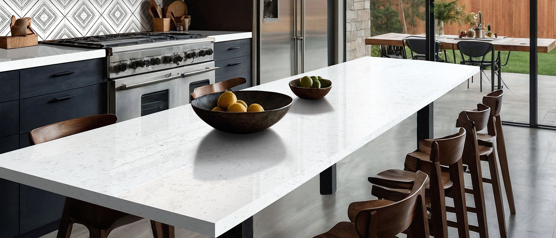 Our Fairy White Quartz elevates any space with its brilliant, porcelain white background, delicately threaded with light ...