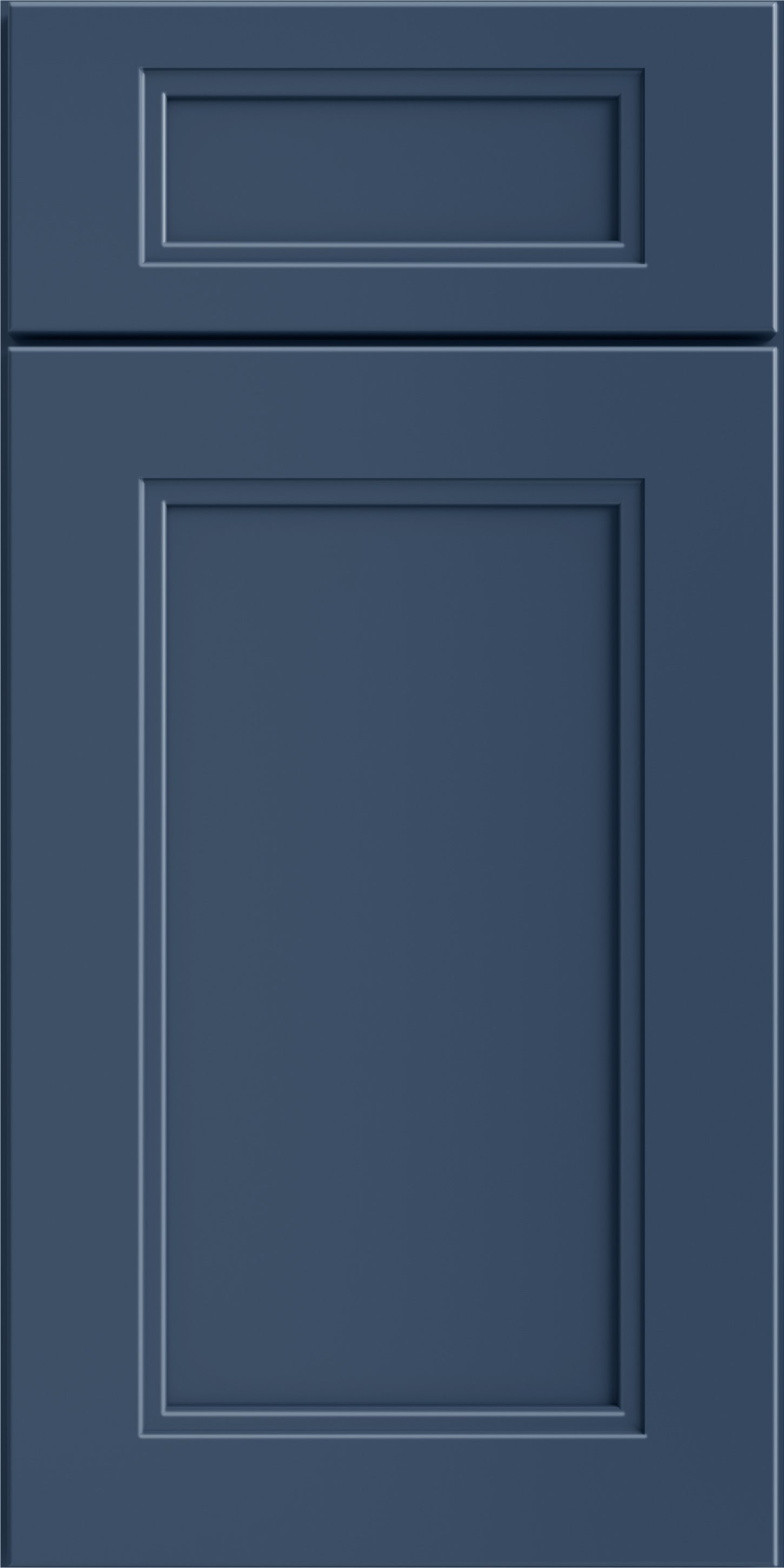 This full overlay, shaker-inspired door comes with a beautiful accent molding wrapped around the flat center panel for durability. Finish options include White and Ocean.