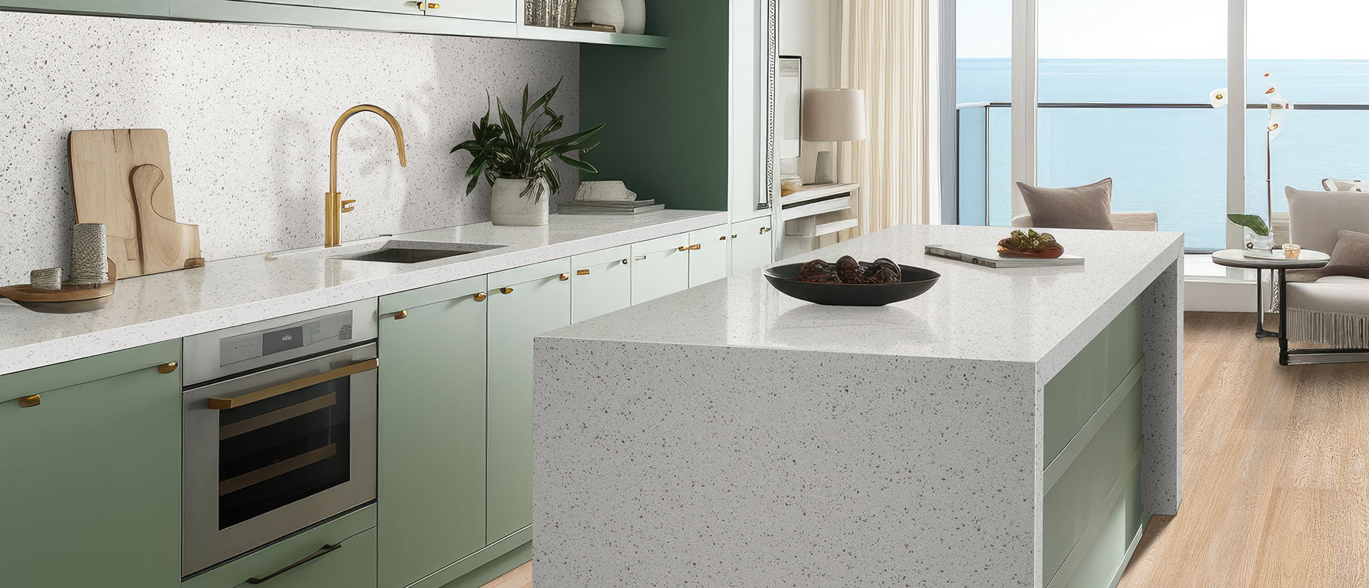 Featuring soft shades of white and accents of gray, Iced White Quartz is so beautiful that you can't help but stare. Durable, low-maintenance, and stain-resistant, Iced White is suitable for a variety of applications in both homes and commercial spaces. Whether used as a countertop in the kitchen, a backsplash in the bathroom, or for accent walls, this snowy white quartz is sure to enhance your space. Available in 2 cm and 3 cm slabs and prefabricated options for flexible installation and design. White quartz countertops are more than just a trend; they are a timeless choice designed to last for generations.