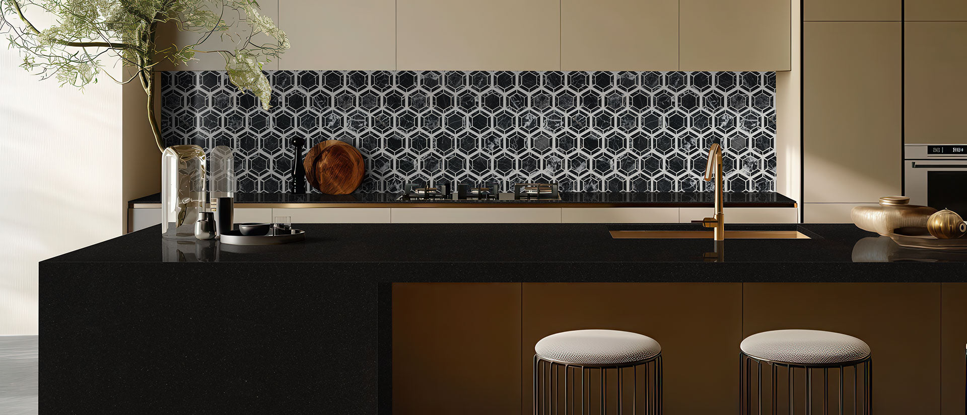 If you're looking for a dark and dramatic black quartz countertop, you're bound to fall in love with Midnight Majesty®. T...