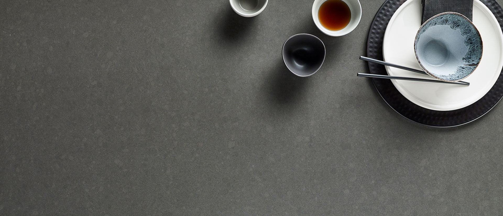 Deep dusky graphite gray is flecked with onyx, iron, and pewter in our Shadow Gray Quartz. Use this low-maintenance and s...