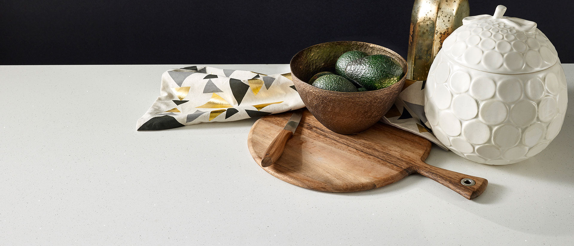 Stellar White Quartz features a soft white background with subtle gray flecks for added dimension and character with unmatched variety and visual appeal. The low variation of this premium quartz makes it ideal for designs where an urban chic or modern industrial design element is desired. Durable, easy to clean, and virtually maintenance-free, it's suitable for accent walls, backsplashes, bars, and tabletops; and of course, it is perfect for creating white quartz countertops that will stand the test of time.